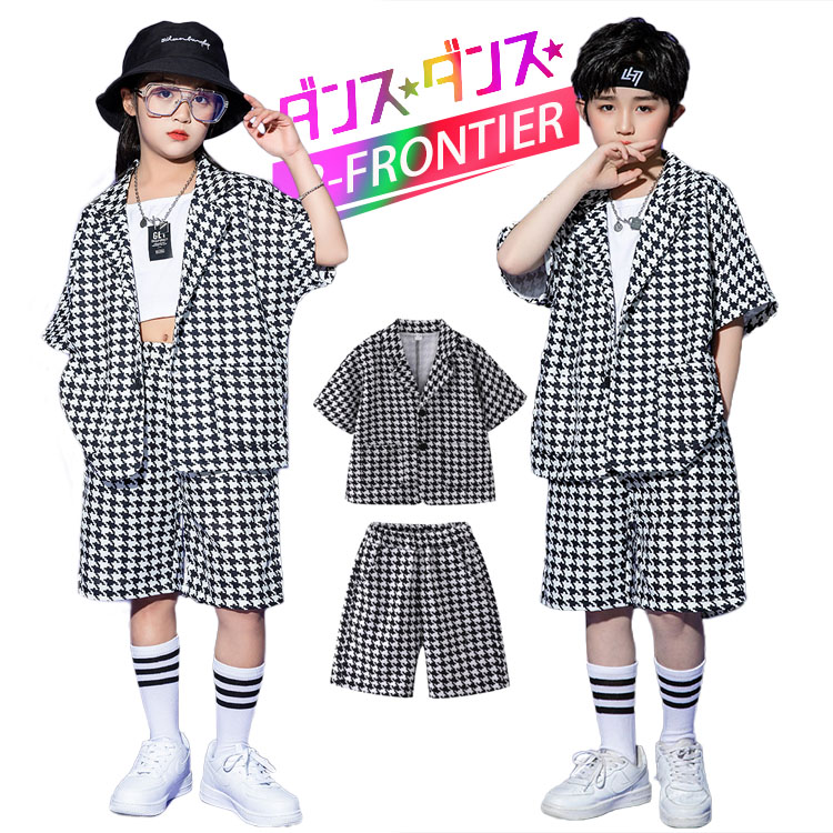 子供スーツ 千鳥柄 フォーマル ジャケット パンツ ジャズダンス ガールズ 韓国 ヒップホップ hiphop セットアップ 演出服 応援団 練習着 ユニセックス 110 180