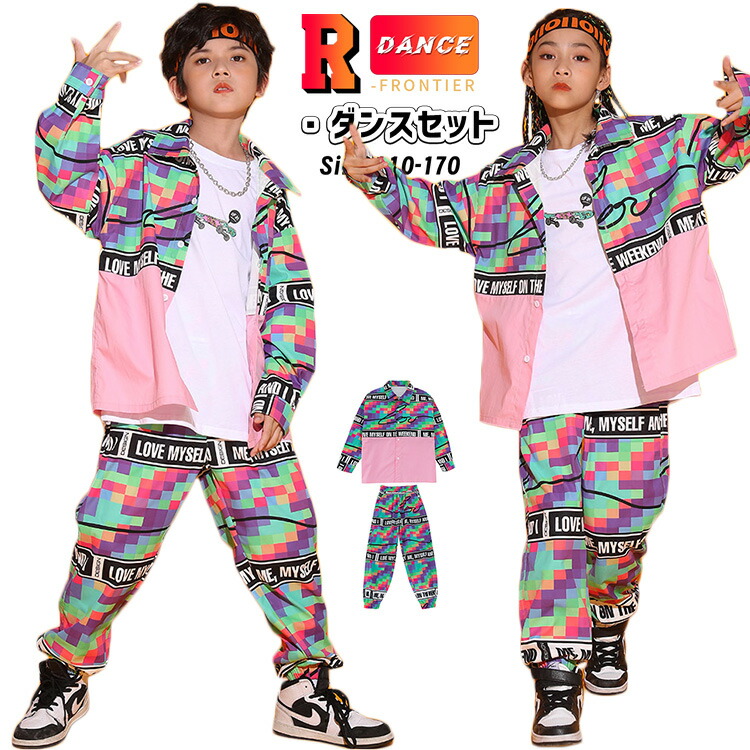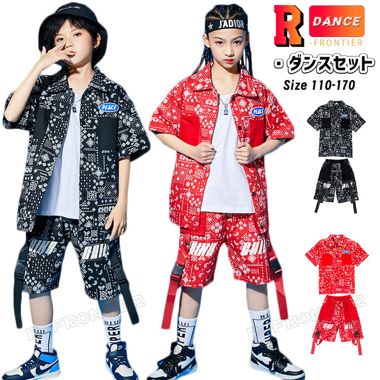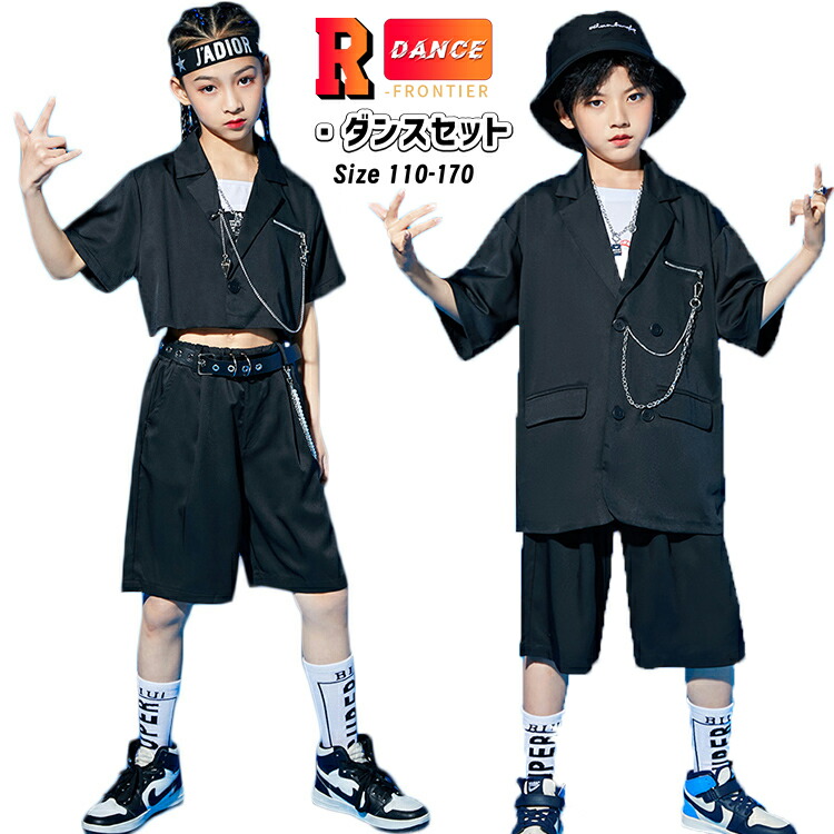 ヒップホップ キッズ ダンス 衣装 女の子 男の子 セットアップ 子供 - 衣装 ダンスウェア 大きいサイズ 110 120 130 140 150 160 170 180