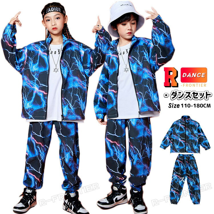 ヒップホップ キッズ ダンス 衣装 長袖 女の子 男の子 雷電柄 雷柄 電柄 長袖 セットアップ 子供 - 衣装 大きいサイズ 110 120 130 140 150 160 170 180