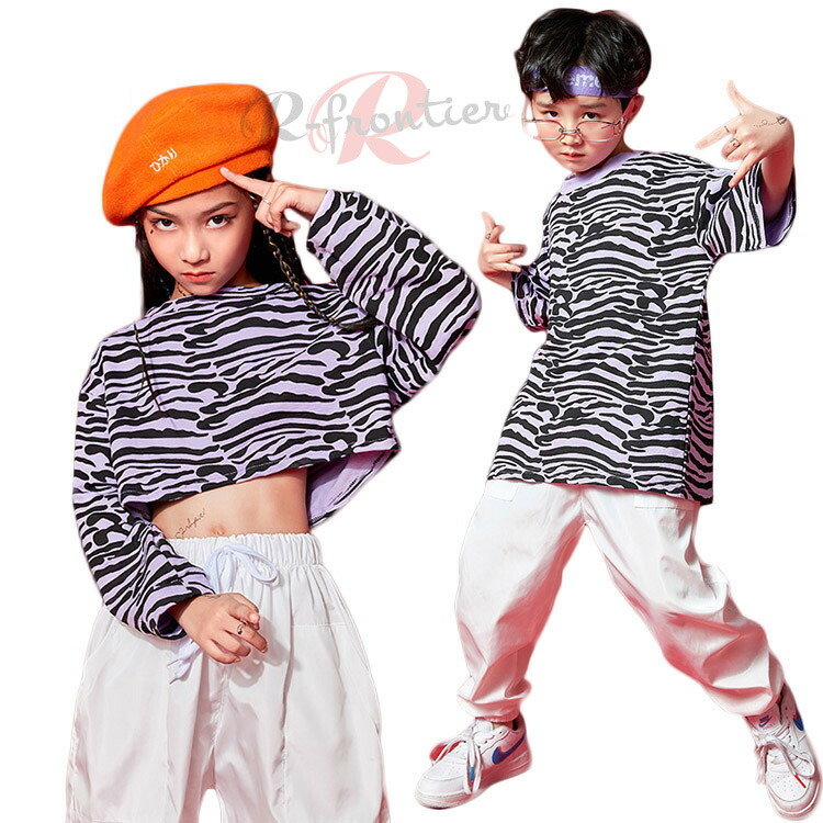 ゼブラ柄 ヒップホップ キッズ ダンス 衣装 男の子 セットアップ 子供 k-pop 衣装 女の子 ダンスウェア 大きいサイズ 110 120 130 140 150 160 170 180