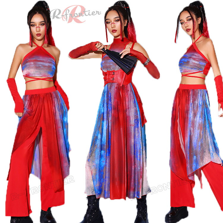 赤 ジャズダンス 衣装 レディース K-POP ダンス衣装 セットアップ レディース 大人 韓国 ジャズ ダンス衣装 へそ出し ヒップホップ DS チアダンス k-pop 衣装