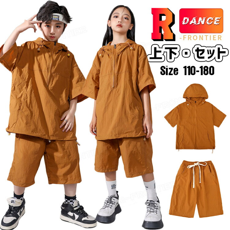 運動風 ダンスセット ダンス衣装 キッズ セットアップ 半袖 パーカー ハーフパンツ ジャズダンス 韓国 k-pop ヒップホップ hiphop 演出服 110-180cm