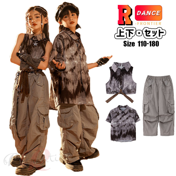 ダンス衣装 キッズ ベスト パンツ キッズ カーゴパンツ かっこいい ダンスセット ジャズ ダンス衣装 目立つ 女の子 110 120 130 140 150 160 170