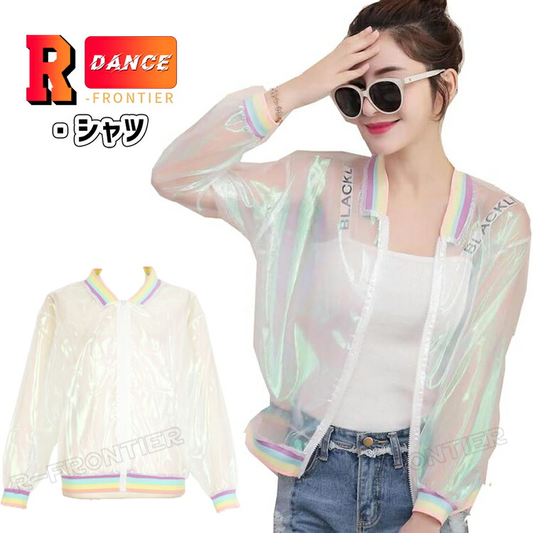 ファッション レディース トレンド 長袖 透け ブルゾン アウター カジュアル ファンシー ポップ ガーリー 虹 オーロラカラー 透明 クリア 透け感 オパール 韓国ファッション 大きいサイズ