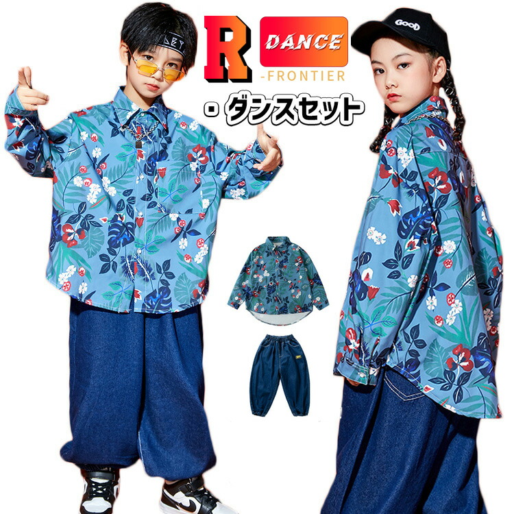 キッズダンス衣装 セットアップ 柄シャツ デニムパンツ かっこいい 韓国 k-pop ダンス衣装 ヒップホップ hiphop 演出服 110-180cm