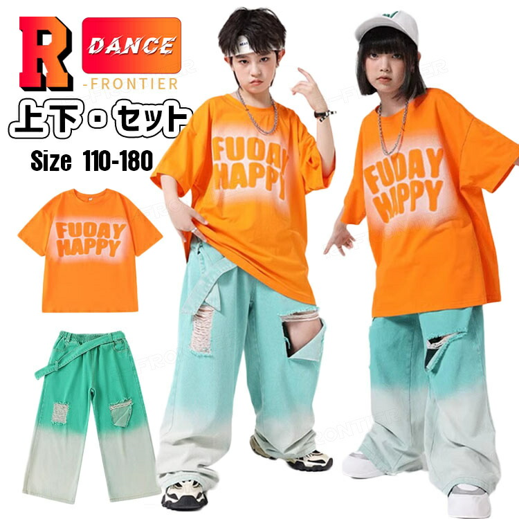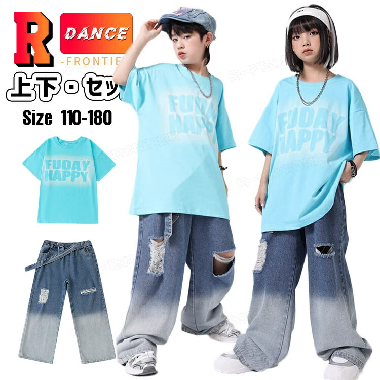 キッズダンス衣装 セットアップ 半袖 tシャツ ダメージ デニムパンツ かっこいい 韓国 k-pop ダンス衣装 ヒップホップ hiphop 演出服 110-180cm