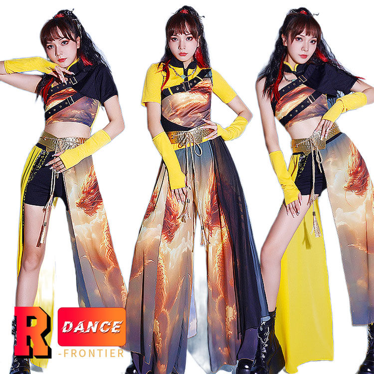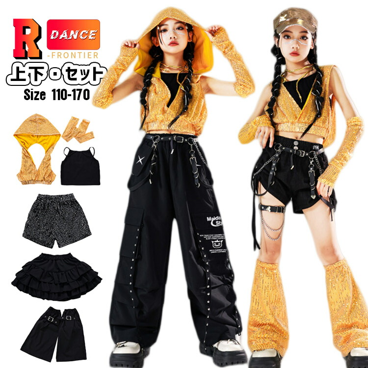 キッズ ダンス衣装 黄色 セットアップ へそ出し トップス 女の子 キラキラ 袖なし かっこいい ワイドパンツ ヒップホップ 韓国 -衣装 ジャズダンス 演出服 応援団 イベント110-170