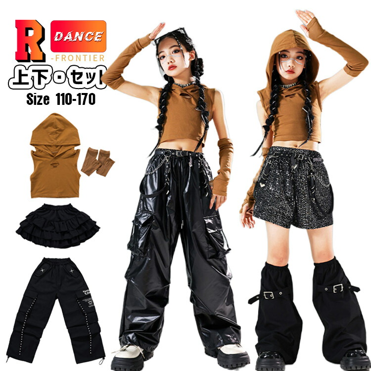 キッズ ダンス衣装 茶色 セットアップ へそ出し トップス 女の子 袖なし かっこいい ワイドパンツ ヒップホップ 韓国 k-pop衣装 ジャズダンス 演出服 応援団 イベント110-170cm