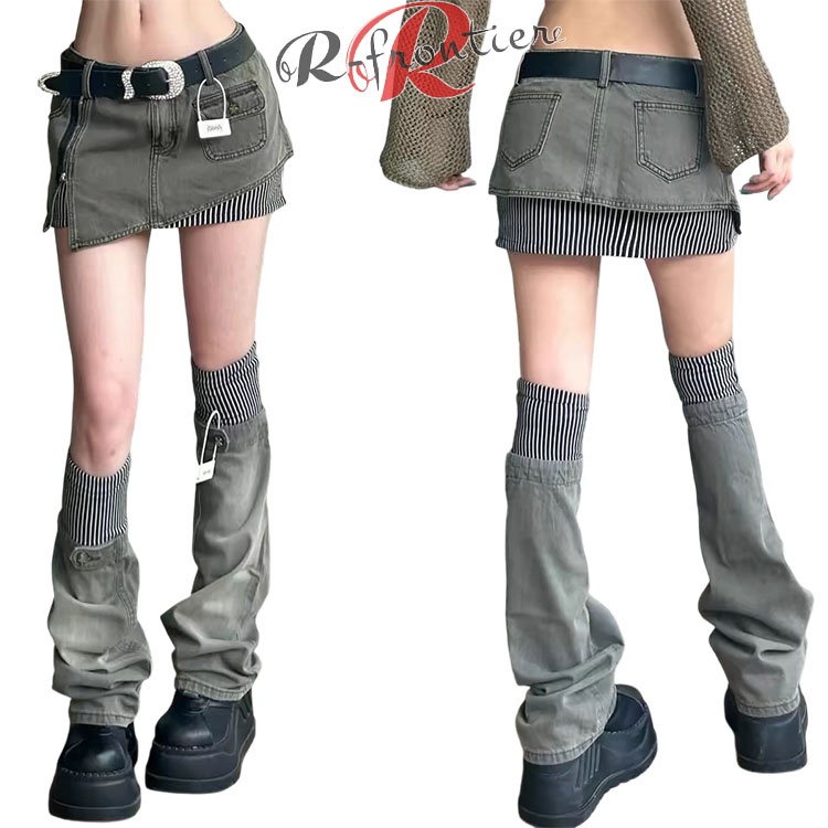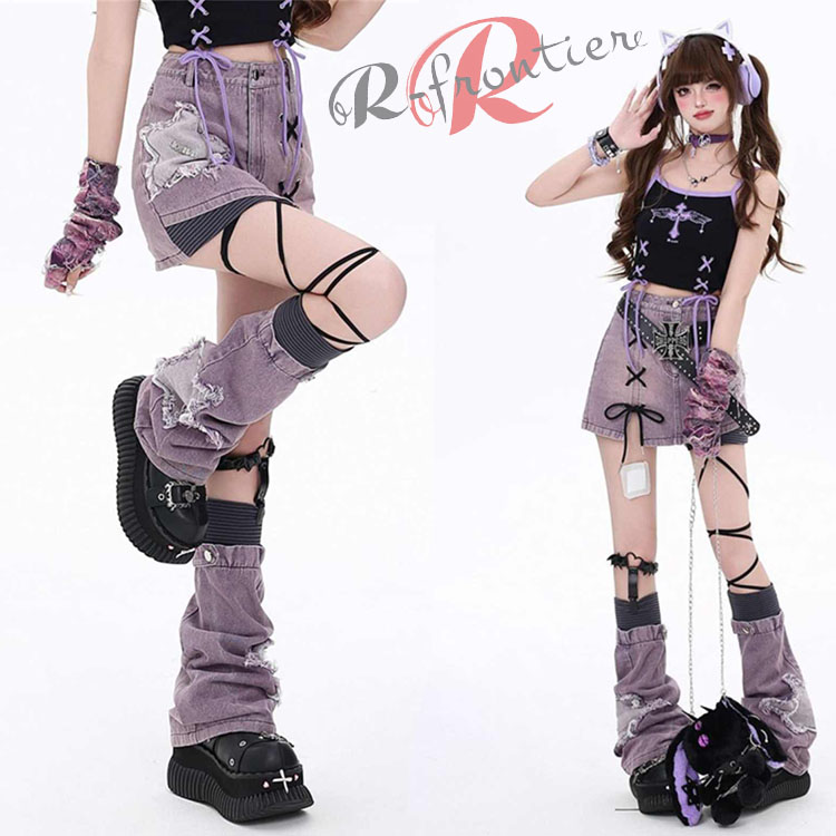 ダンス デニムスカート ダンス衣装 スタイルアップ デニム レディース ステージ用パンツ 韓国 - 舞台ダンス 着瘦せる 可愛い