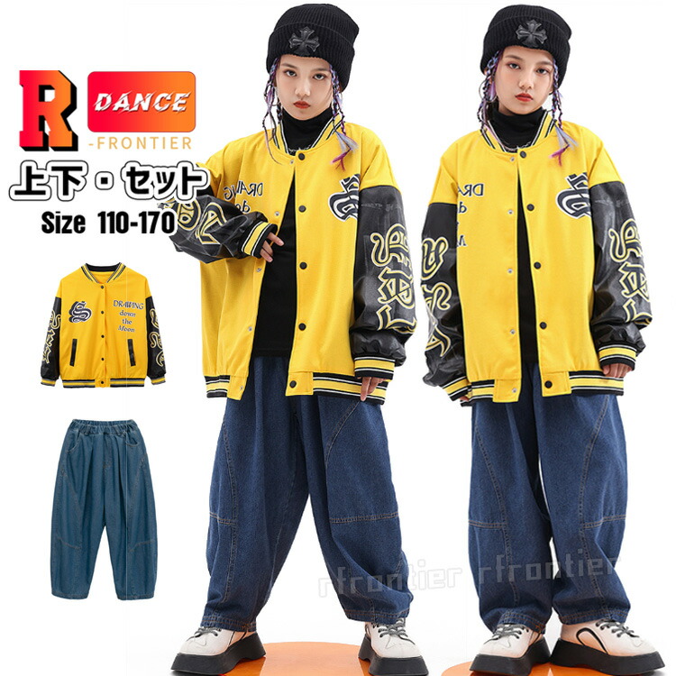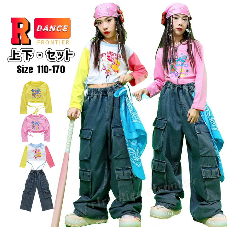 デニムパンツ へそ出し トップス シャツ キッズ ダンス 衣装 ヒップホップ 団体 ダンス衣装 ジュニア イベント 発表会 演出服 応援団 110 170