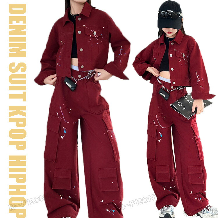 ジャズダンス 衣装 ダンス衣装 キッズ ヒップホップ k-pop 韓国 k-pop 衣装 赤スーツ ダンス スーツ 大きめ セットアップ トップス パンツ かっこいい 120 130 140 150