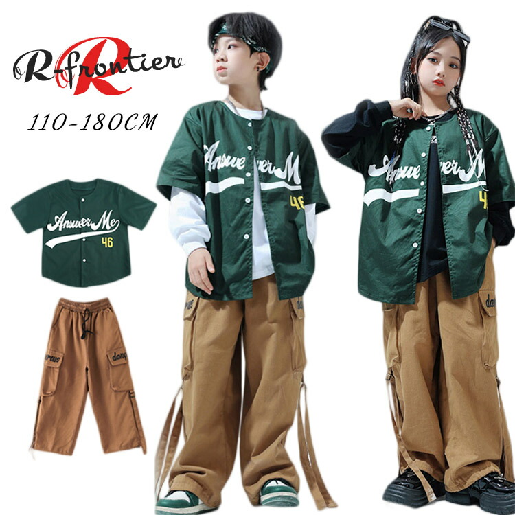 ダンス衣装 ヒップホップ ベースボールシャツ キッズ 女の子 男の子 セットアップ 韓国 -衣装 かっこいい ジュニア 子供 イベント 発表会 演出服 応援 110 180