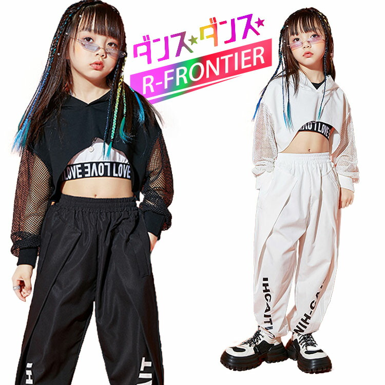キッズ ダンス衣装 セットアップ ヒップホップ 黒パンツ カッコイイ トップス ズボン 夏 HIPHOP 子供 男の子 女の子 ステージ衣装 団体服 発表会 演出服 韓国