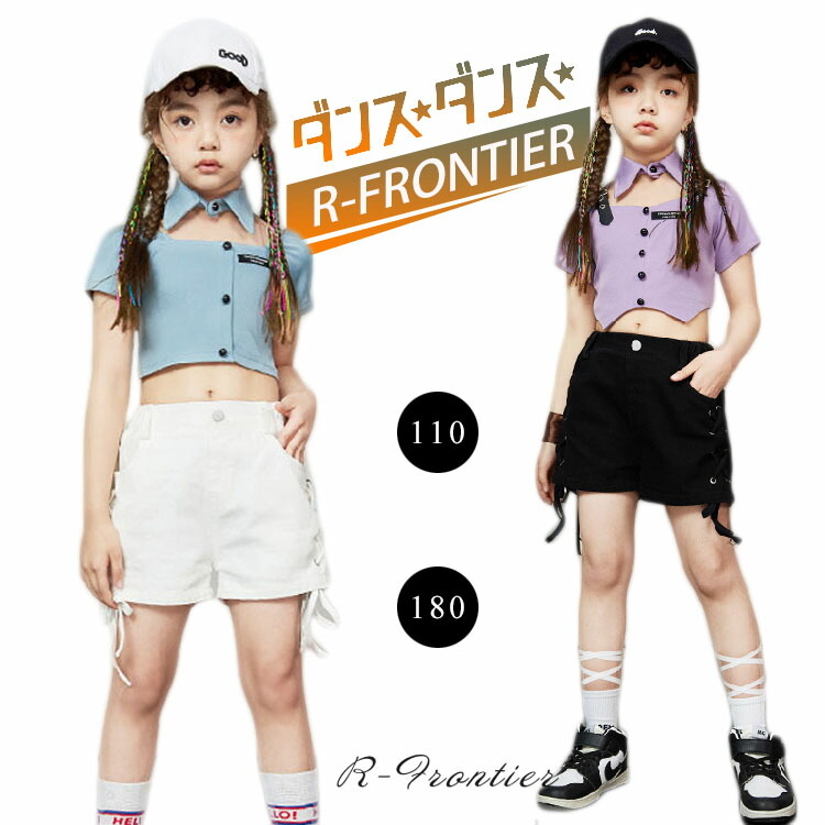 ダンス トップス へそ出し キッズ 白パンツ 女の子 セットアップ ヒップホップ 紫 発表会 演出服 ステージ衣装 ショートパンツ ジャズダンス チアーガール 110 180