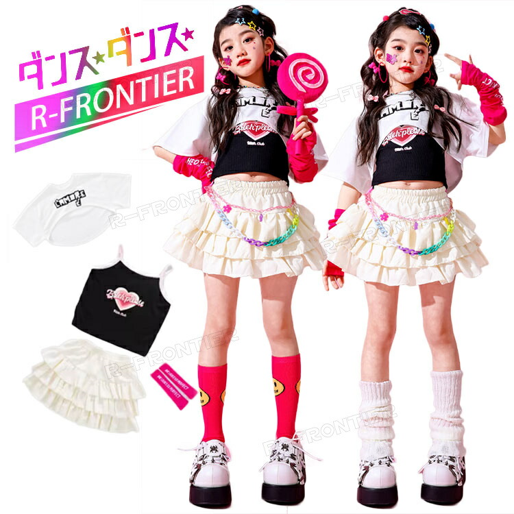 ダンス衣装 キッズ セットアップ へそ出しトップス スカート タンクトップ ジャズダンス ガールズ 韓国 ヒップホップ hiphop セットアップ 演出服 応援団 練習着 110-170cm
