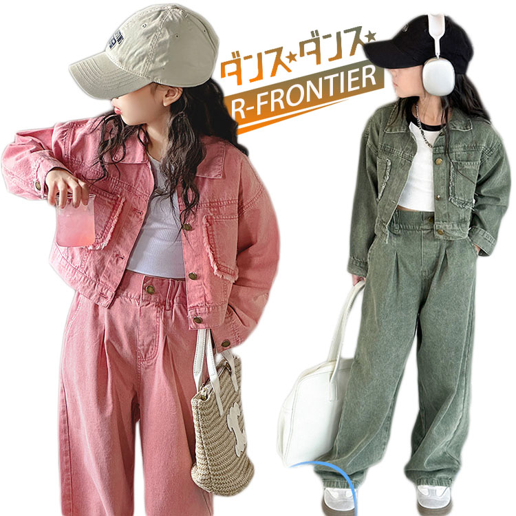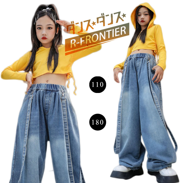 ダンス トップス へそ出し キッズ 女の子 かっこいい セットアップ デニムパンツ 長袖 パーカー ヒップホップ 韓国 k-pop衣装 ジャズダンス 演出服 イベント 発表会 応援 110 180