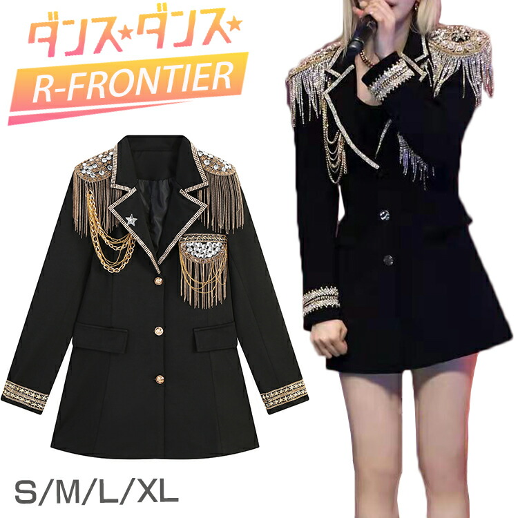 -衣装 ダンス 衣装 レディース 大人 ジャケット 無地 韓国 制服 ブラック キラキラ チェーン付き 高校生 ヒップホップ ジャズダンス かっこいい 肩章 スター 新色追加