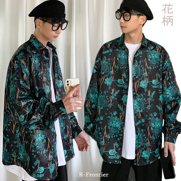 柄シャツ 大きめ ダンス 衣装 ヒップポップ 緑 シャツ 衣装 演出服 ステージ衣装 おしゃれ 大きいサイズ 大きめ 3