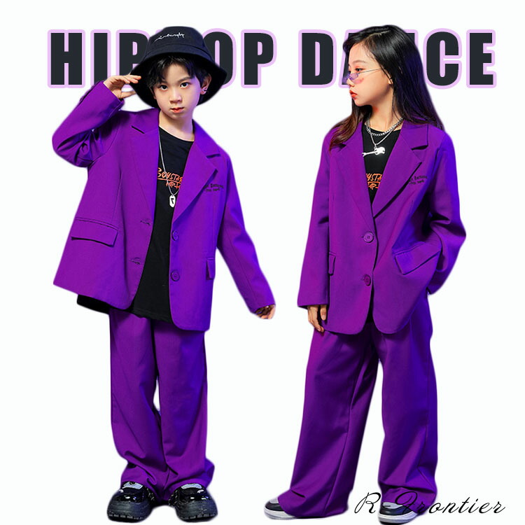 キッズダンス衣装 紫 セットアップ 女の子 ヒップホップ かっこいい ダンススーツ ジャズダンス ジャケット 男の子 韓国 -衣装 子供 長袖 団体 イベント 120 130 140 150