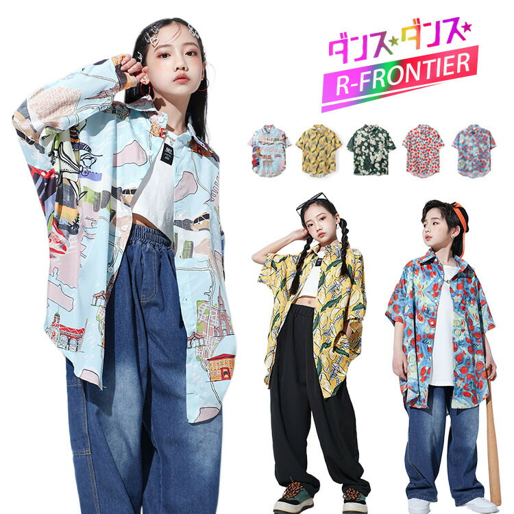 キッズダンス衣装 セットアップ デニムパンツ トップス 柄シャツ HIPHOP ヒップホップ ステージ衣装 子供 練習着 韓国 発表会 韓国 かっこいい 派手 110 120 130 140 150