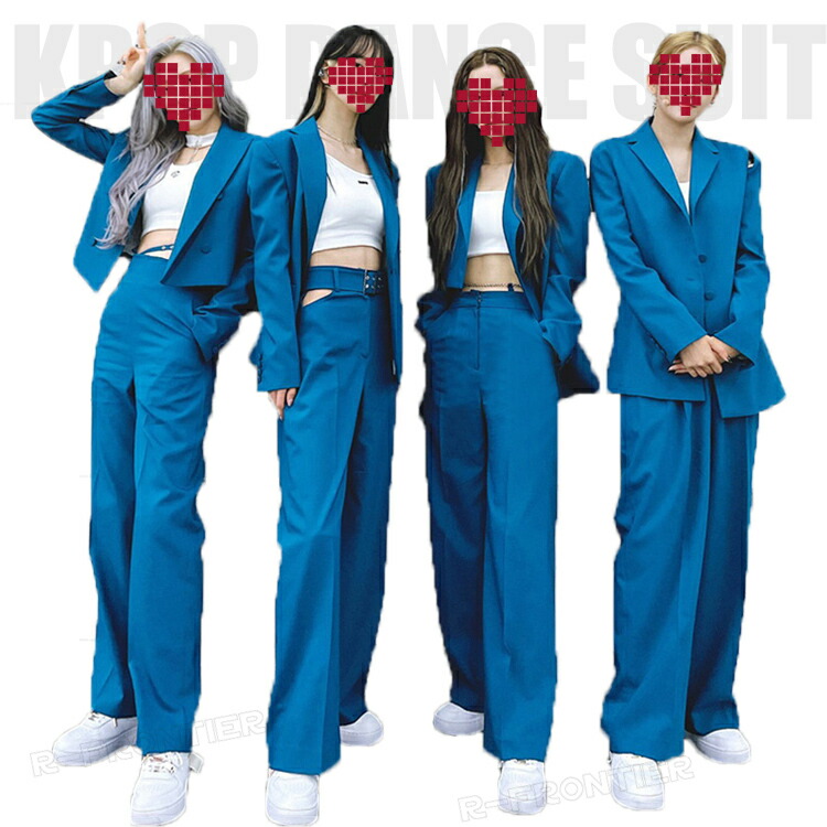 k-pop 衣装 大人 ジャズダンス衣装 青色 水色 ジャケット スーツ風 大人 ダンス衣装 セットアップ ブレザー レディース DS 演出 ダンスウェア ジャケット パンツスーツ