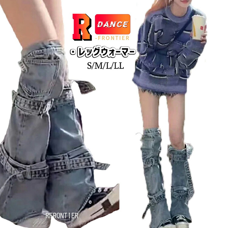 デニムレッグウォーマー レッグカバー デニム ダンス衣装 大人 ガールズ 演出 対応 ステージ ダンス衣装 小物 韓国 高校生 S M L LL 韓国 ソックス 足長効果 スタイルアップ