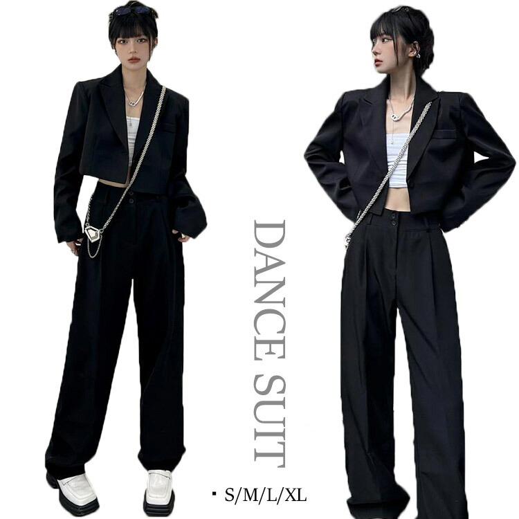 韓国 ダンス 衣装 k-pop セットアップ レディース ワイドパンツ ジャケット 黒 かっこいい おしゃれ カジュアル 上下セット 無地 大きいサイズ
