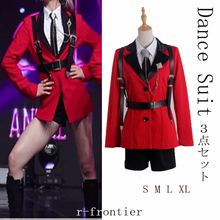 ダンス衣装 セットアップ 韓国制服 ジャズダンス 衣装 ジャケット 大人衣装 レディース イベント衣装 レッド 5点セットセクシー 長ズボン 130 140 150 S M L XL 大きいサイズ