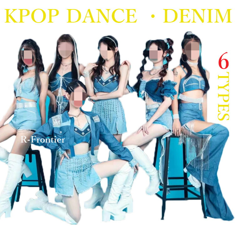 韓国 ダンス 衣装 大人 ダンス衣装 青色 セットアップ レディース へそ出し キラキラ - 衣装 選べる6タイプ 韓国 アイドル 衣装 セットアップ 肌見せ 細身 デニムセット