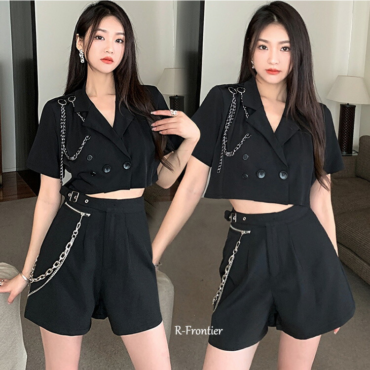 韓国 ダンス 衣装 レディース ジャズダンス 衣装 黒 セットアップ ヒップポップ HIPHOP JAZZ へそ出し トップス ハーフパンツ ダンスイベント S M L LL 発表会
