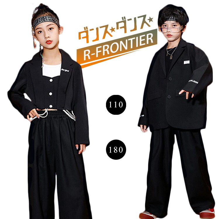 キッズダンス衣装 セットアップ 黒 女の子 男の子 かっこいい ダンススーツ ヒップホップ 韓国 -衣装 ジャズダンス ジャケット 発表会 演出服 イベント ステージ衣装 110
