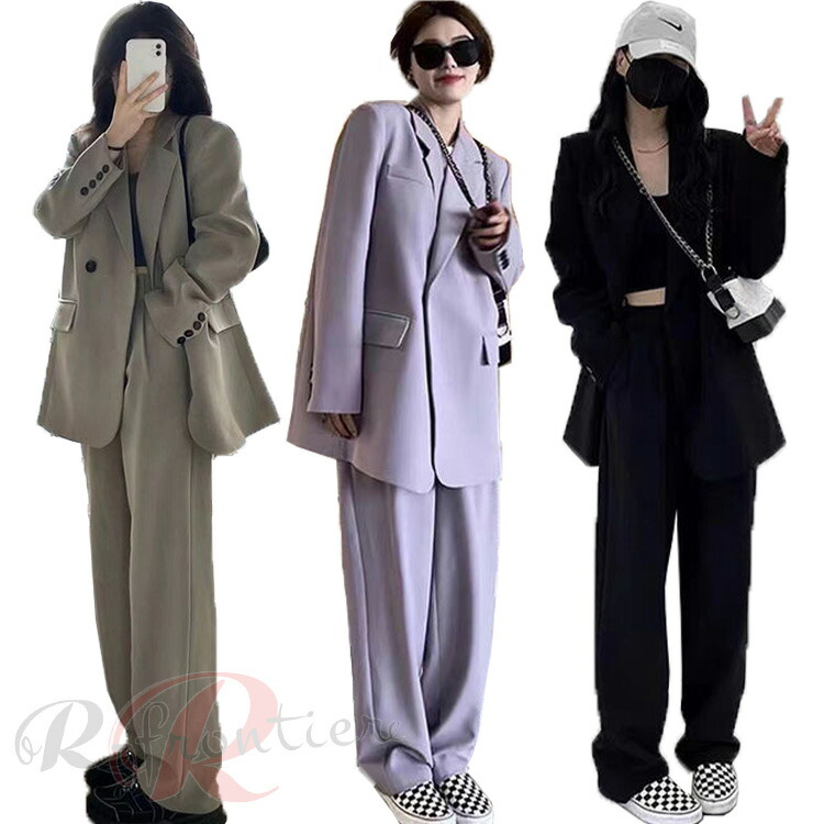 韓国 ダンス 衣装 - セットアップ レディース ワイドパンツ ジャケット 黒 かっこいい おしゃれ カジュアル 上下セット 無地 大きいサイズ
