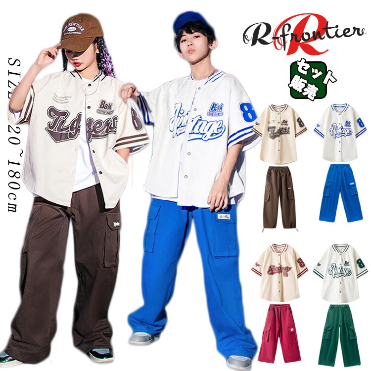 ダンス衣装 ヒップホップ キッズ 青 茶色パンツ セットアップ 女の子 男の子 ベースボールシャツ 韓国 -衣装 かっこいい ジュニア 子供 イベント 発表会 演出服 応援 12