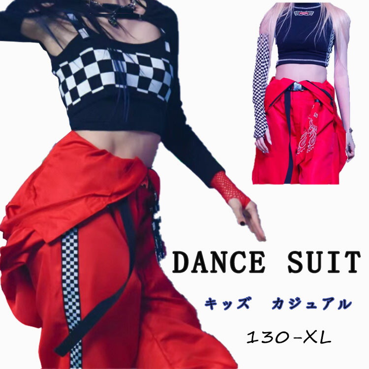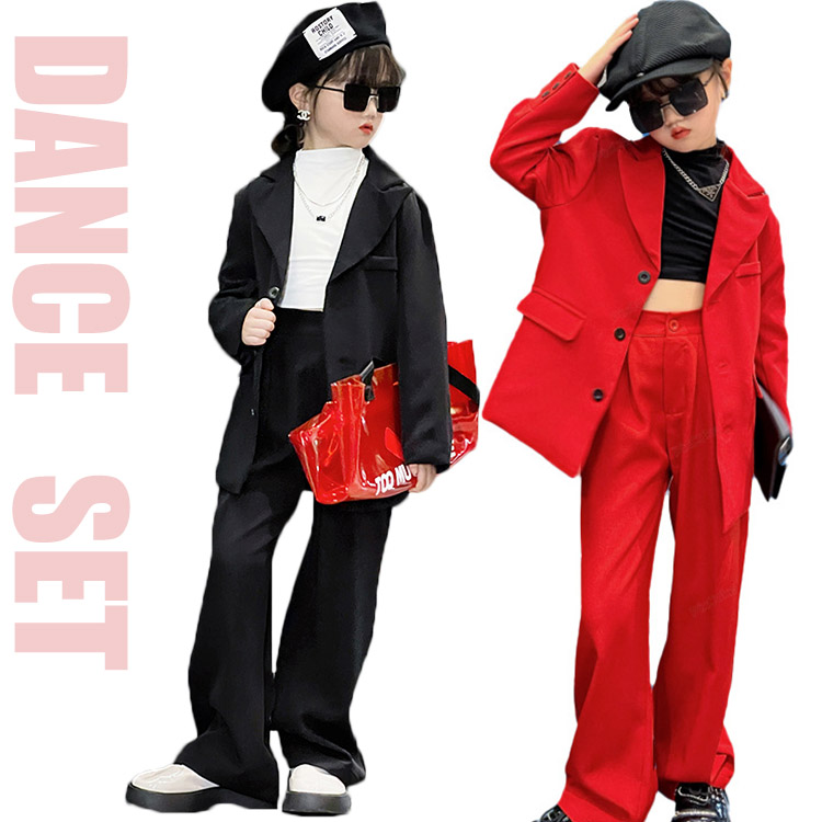 赤 スーツセット キッズダンス衣装 セットアップ k-pop 子供服 ヒップホップ ジャケット ロングパンツ ロックダンス 女の子 ストリート b系 hiphop 120 130 140 150 16