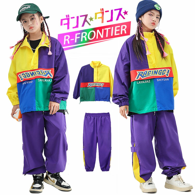 キッズ ダンス衣装 へそ出しトップス セットアップ 女の子 男の子 韓国 -衣装 ヒップホップ 紫 スカート ワイドパンツ ジュニア 演出服 ダンス衣装 イベント 110 120 130 14