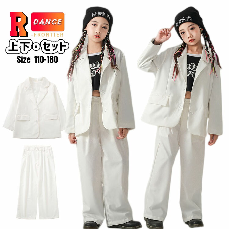 キッズ ダンス衣装 ヒップホップ かっこいい 女の子 ダンススーツ セットアップ 白パンツ 男の子 ジャケット -衣装 子供 ジャズダンス ワイドパンツ 長袖 団体 イベント 110-180