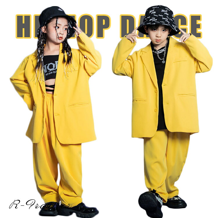 ダンス衣装 ダンススーツ キッズ 女の子 黄色 ヒップホップ 男の子 韓国 -衣装 ジャズダンス かっこいい ブレザー セットアップ 長袖 団体 イベント 120 130 140 150 16