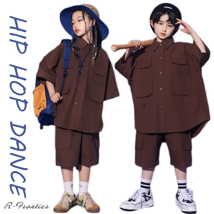 キッズ ダンス衣装 セットアップ 茶色シャツ ヒップホップ 女の子 男の子 かっこいい 韓国 -衣装 ジャズダンス 演出服 ジュニア 子供 小学生 中学生 イベント 110-18