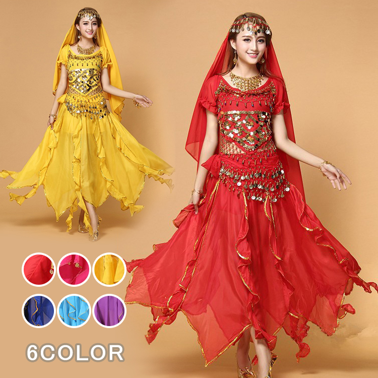 ベリーダンス 衣装4点セット アラジン衣装 ベリーダンス 衣装 スカート コスチューム ダンス衣装スポーツ アウトドア 体操 ダンス ベリーダンス 衣装セット