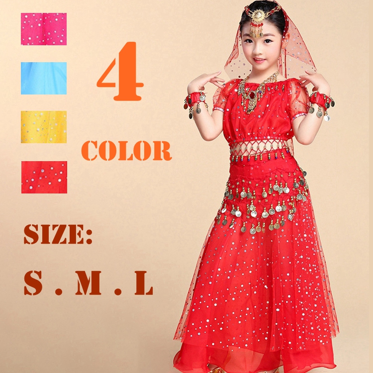 ベリーダンス 衣装 子供用 セット 4点セット ハロウィン コスプレ 子供 衣装 アラジンコスプレ ジャスミン キッズ 仮装 アラジン衣装 ハロウィン衣装 ベリーダンス パーティー 発表会