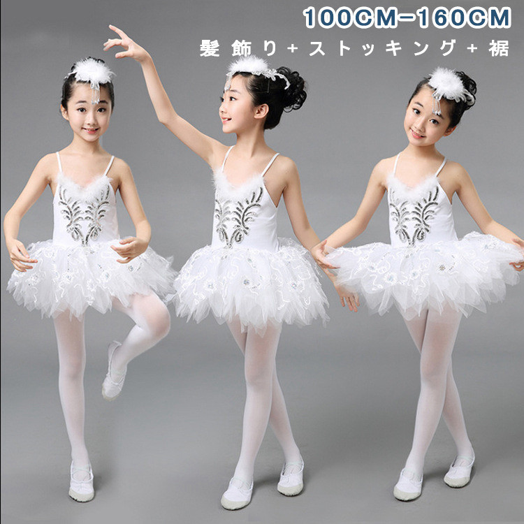 ワンピース 子供バレエ レオタード チュチュ 演出 バレエ ballet用品 高級感 ステージ バレエ発表会 刺繍 女の子 チュールスカート ダンス服 新体操 ダンスウェア ホワイト 100~160c
