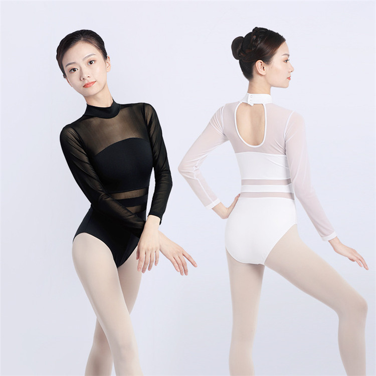 バレエ レオタード ストレッチ 長袖 細身 演出バレエ 練習着 ブラック ホワイト バレエ形体服 大人 レディース フェミニン ダンス服 新体操 レッスン着 ダンスウェア 用品 試合着
