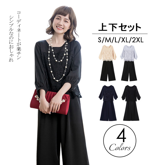 華やかレースのパンツドレス 後ろ姿に自信 お買得 ヘビロテ間違いなし 薄手の肌触りの良い素材 スリット入り おしゃれ スリットパンツ 母 ママ プレゼント きれいめ 春夏秋に対応