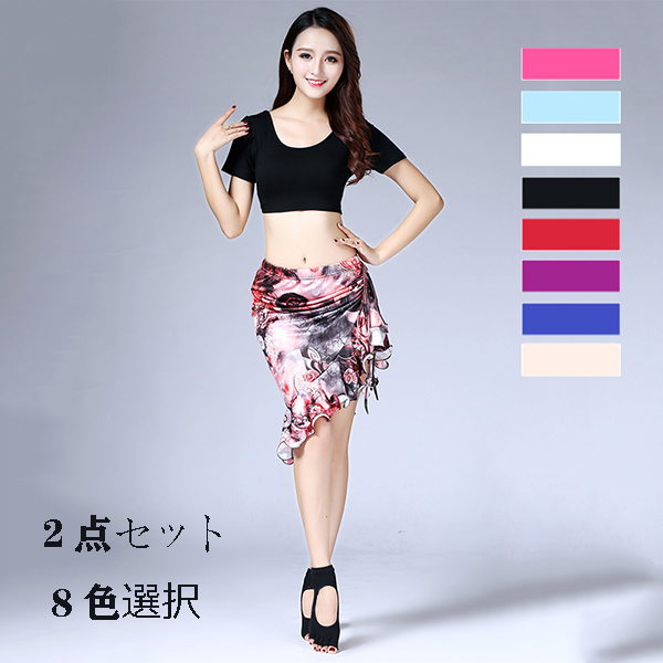ベリーダンス衣装 おすすめ レッスン着 8色選択 演出服 トップスとスカートの2点セット ダンス 花柄 ヨガ ダンス衣装 おしゃれ dp191y
