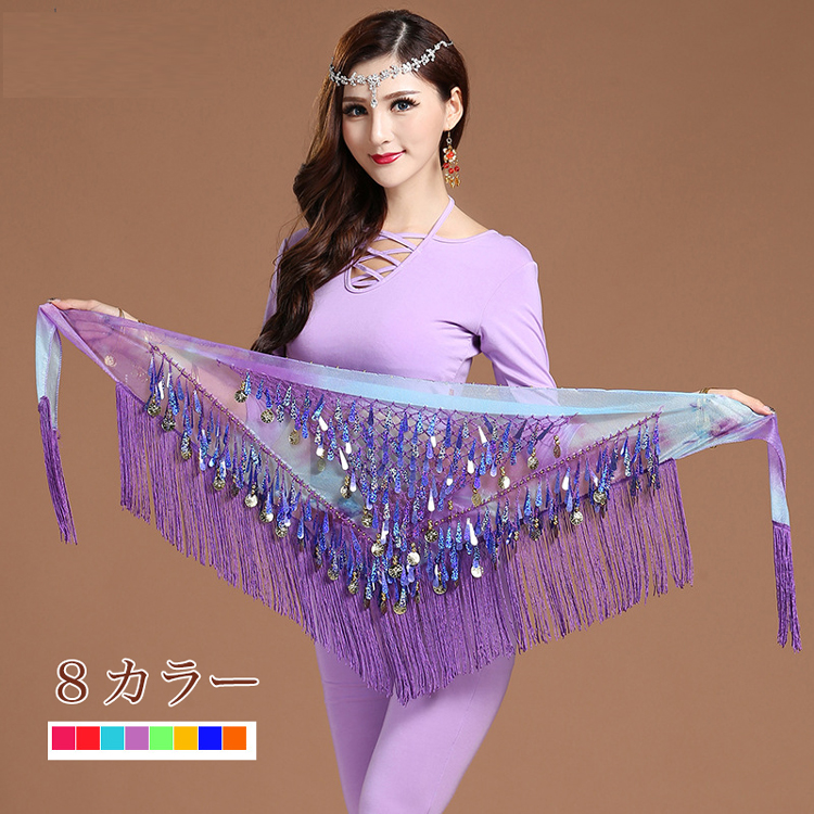 ベリーダンス ヒップスカーフ ベリーダンス衣装 シフォン素材 グラデーション シンプルヒップスカーフ アラビアン ステージ衣装 舞台衣装 三角形 スカーフ スパンコール フリンジ