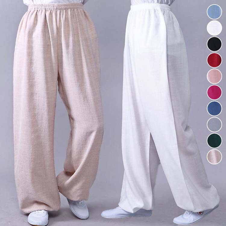 春夏綿麻素材太極拳パンツ チョウチンパンツ ゆったり ヨガパンツ ダンスパンツ 練習ウエア 運動スポーツパンツ レディース用カンフーパンツ 10色 リネン中国風カンフーウエア