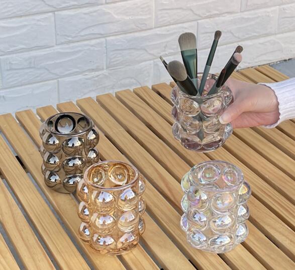 4色でこぼこメイクブラシスタンド ガラス 化粧品 メイク道具 化粧筆 ブラシ ペンホルダー ペン立て 小物入れ クリア 透明 収納 整理 整頓 おしゃれ かわいい シンプル 韓国インテリア 雑貨 北欧
