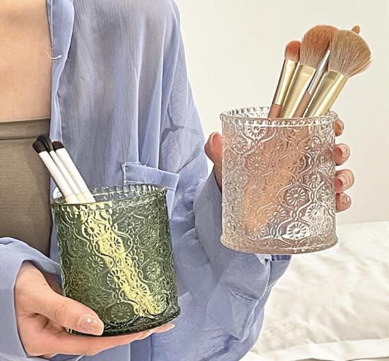 2色メイクブラシスタンド ガラス 化粧品 メイク道具 化粧筆 ブラシ ペンホルダー ペン立て 小物入れ クリア 透明 収納 整理 整頓 おしゃれ かわいい シンプル 韓国インテリア 雑貨 北欧 卓上