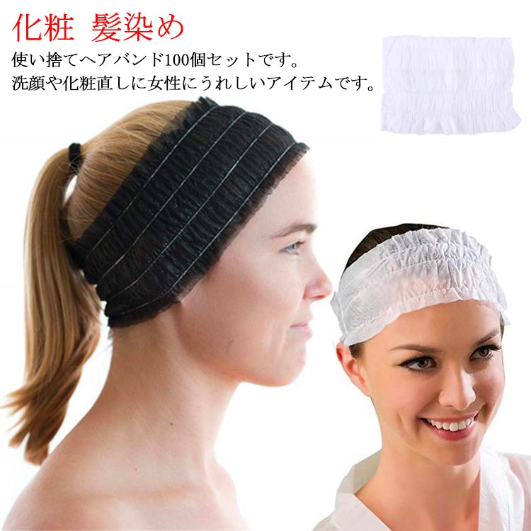 使い捨て ヘアバンド 洗顔 お風呂上り ヘアターバン 使い捨てヘアバンド ヘアキャップ ヘッドバンド 不織布 黒 白