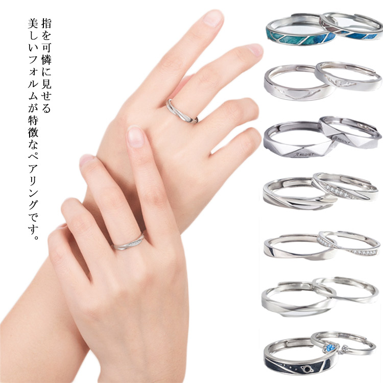 ペアリング カップル リング 純銀製 指輪 レディース メンズ フリーサイズ 2個セット 恋人 プレゼント 結婚指輪 婚約指輪